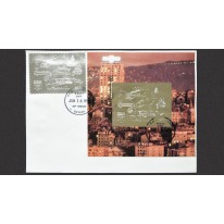 Srebrny znaczek oraz ten sam znaczek w bloku umieszczone na kopercie FDC i upamiętniające międzynarodową wystawę filatelistyczną Genova’92 w Genui.
