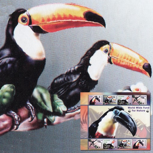 Na znaczkach widnieje tukan wielki i tukan żółtogardły.