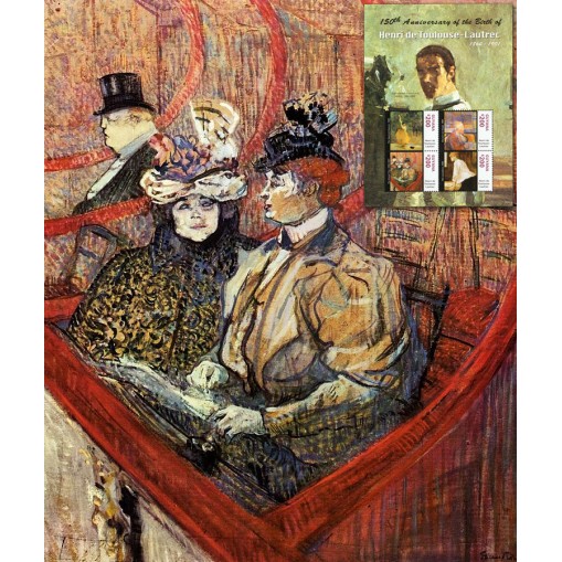 Blok upamiętniający 150. rocznicę urodzin malarza Henriego de Toulouse-Lautreca. Na znaczkach i bloku widnieją jego obrazy, kolejno: „Hiszpańska tancerka”, „Vincent van Gogh”, „Grand Tier (Loża teatralna)”, „Praczka” i „Autoportret w lustrze”.