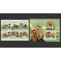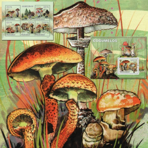Arkusz i blok, na znaczkach których widnieją następujące gatunki grzybów: