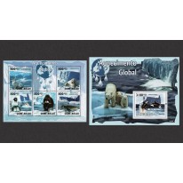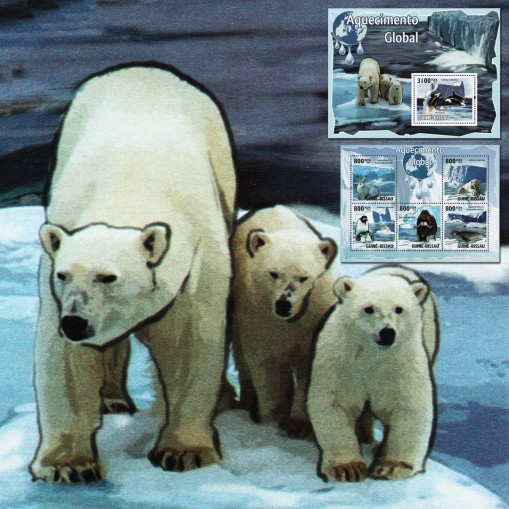 Seria w arkuszu i blok nagłaśniające efekty globalnego ocieplenia klimatu.