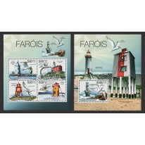 Seria w arkuszu i blok, na znaczkach których widnieją następujące latarnie morskie i gatunki ptaków: