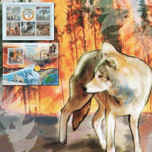 Seria w arkuszu i blok nagłaśniające problem ocieplania się klimatu.