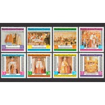 Na znaczkach przedstawiono koronacje królów Jerzego V, Edwarda VII i Jerzego VI.