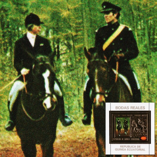 Znaczek w bloku upamiętniający ślub księżnej Anny i Marka Phillipsa.