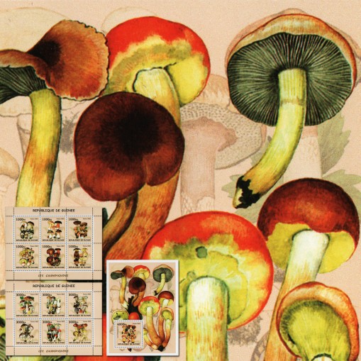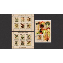 Nieautoryzowana seria w dwóch arkuszach i blok, na znaczkach których widnieją grzyby.