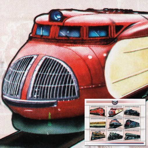 Seria w arkuszu, na znaczkach której widnieją lokomotywy amerykańskie, kolejno:
