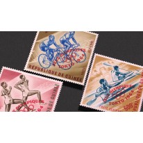 Znaczki wydane uprzednio rok wcześniej, tym razem z nadrukami „JEUX OLYMPIQUES TOKYO 1964” upamiętniającymi jgrzyska olimpijskie.