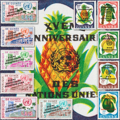 Są to poprzednio wydane znaczki gwinejskie, tym razem z okolicznościowymi nadrukami „XVÈME ANNIVERSAIRE DES NATIONS UNIES".