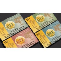Znaczki upamiętniające stulecie Międzynarodowego Związku Telekomunikacyjnego.
