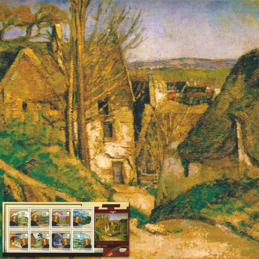 Blok upamiętniający malarza postimpresjonistę Paula Cézanne. Na znaczkach widnieją reprodukcje obrazów przedstawiających krajobrazy i martwe natury, a także portret artysty.