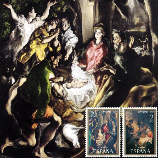 Widnieją na nich reprodukcje dzieł sztuki hiszpańskiej przedstawiające pokłon pasterzy autorstwa, kolejno, El Greco i Bartolomé Esteban Murillo.
