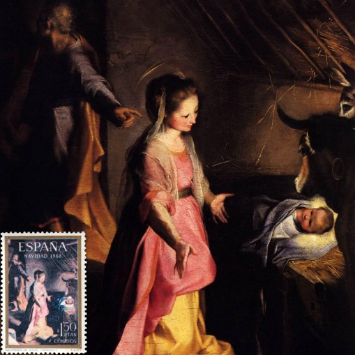 Na znaczku widnieje przedstawienie Świętej Rodziny na obrazie autorstwa hiszpańskiego malarza nazwiskiem Federico Barocci.