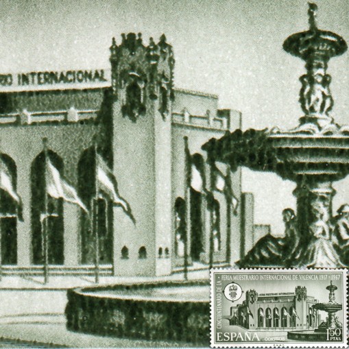 Znaczek upamiętniający 50. rocznicę targów w Barcelonie.