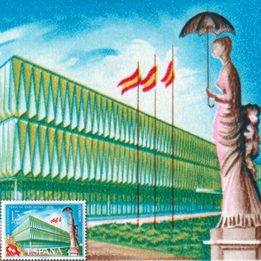 Znaczek upamiętniający 50. rocznicę targów w Barcelonie.