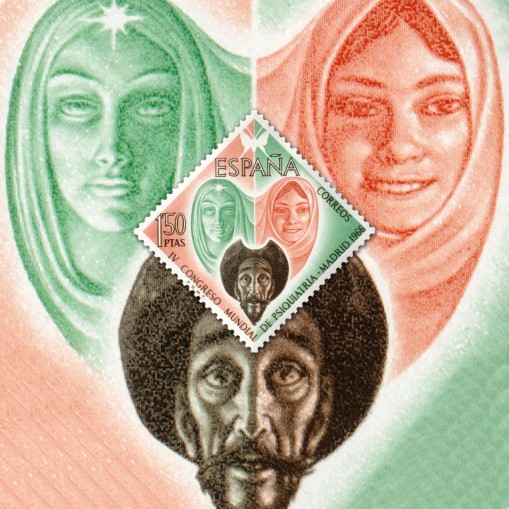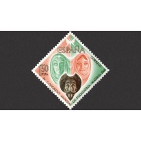 Na znaczku widnieją postaci z powieści Miguela de Cervantesa „Don Kichot z La Manchy”: Don Kichota i jego wybrankę wieśniaczkę Aldonza Lorenzo, nazywaną przez bohatera Dulcyneą z Toboso.