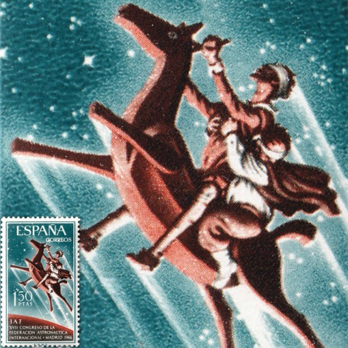 Znaczek upamiętniający 17. Kongres Międzynarodowej Federacji Astronautyki w Madrycie.