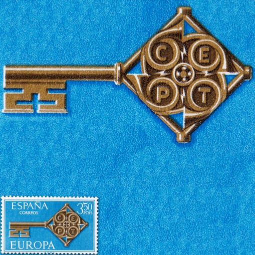 Emisja EUROPA CEPT. Znaczki tej emisji mają rozpoznawalny wśród filatelistów dizajn klucza, na uchwycie którego widnieje logo CEPT, będący projektem szwajcarskiego grafika (Hans Schwarzenbach). Miał to być symbol klucza do drzwi zunifikowanej Europy.