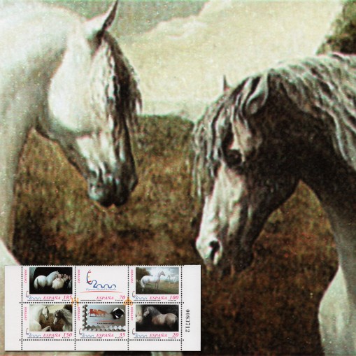 Na znaczkach widnieją przedstawienia koni ze stajni Cartuja-Hierro del Bocardo w malarstwie Jose Manuela Gomeza.