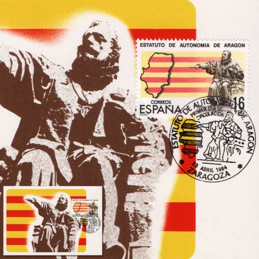 Znaczek na karcie maksimum upamiętniający nadanie Aragonii statusu wspólnoty autonomicznej.
