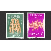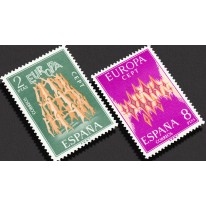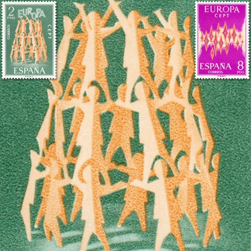 Pierwszy znaczek hiszpański odbiegał projektem od pozostałych, prezentując piramidę ludzi dzierżących napis EUROPA.