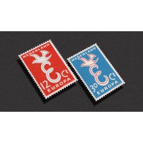 Trzecia emisja EUROPA. Znaczki tej emisji mają rozpoznawalny wśród filatelistów dizajn gołąbka pokoju nad literką „E", będący projektem holenderskiego grafika (Andre Van der Vossen).