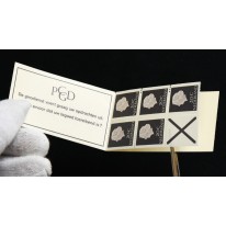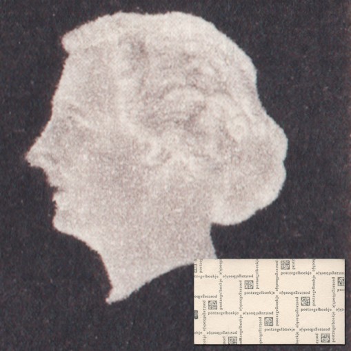 Znaczki obiegowe w zeszyciku filatelistycznym, na których widnieje popiersie królowej Juliany.
