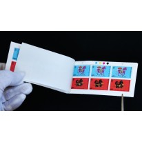 Oferowana odmiana zeszyciku została wydana z okazji międzynarodowej wystawy filatelistycznej „Stamp World London 90” i zawiera dodatkowo stronę z czarno-białym drukiem obu znaczków (który nie był ważny jako opłata za przesyłki pocztowe).