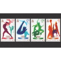 Na znaczkach widnieją kolejno: gimnastyka, skok do wody, lekkoatletyka i koszykówka.