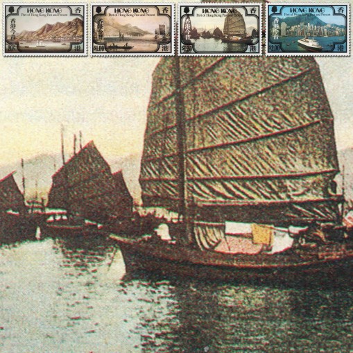 Seria ukazująca widoki portu w Hongkongu na przestrzeni XIX i XX wieku, kolejno: