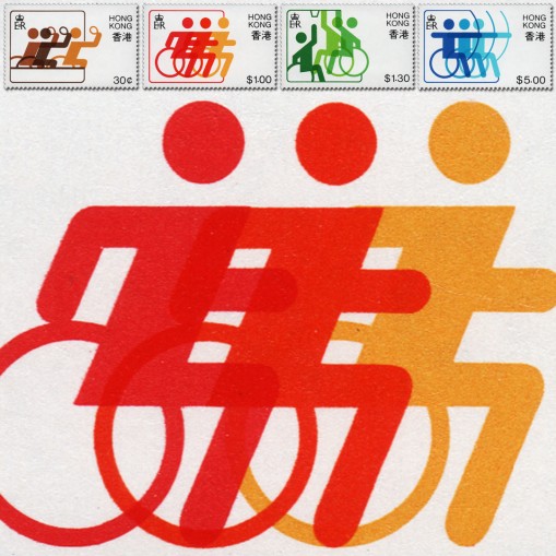 Na znaczkach widnieją niepełnosprawni uprawiający tenisa stołowego, wyścigi jazdy na wózkach inwalidzkich, koszykówkę i strzelectwo.