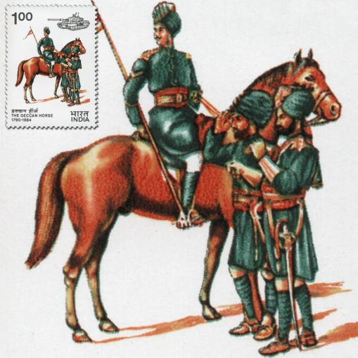 Na znaczku widnieje przekazanie proporczyka pułkowi indyjskiej kawalerii zwanemu po angielsku „The Deccan Horse”.