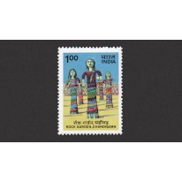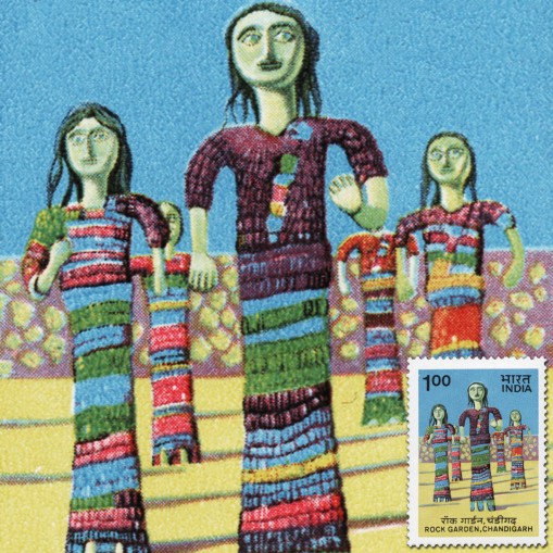 Na znaczku widnieją rzeźby wykonane ze złomu, gruzu, potłuczonej ceramiki itp. przez artystę imieniem Nek Chand Saini (1924-2015), które znajdują się w Kamiennym Ogrodzie w Chandigarth.