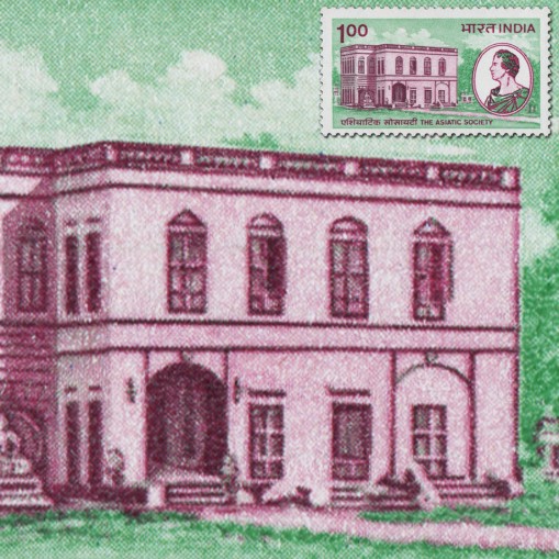 Znaczek upamiętniający dwusetną rocznicę założenia Towarzystwa Azjatyckiego, organizacji poświęconej badaniom historii, kultury i języka ludów azjatyckich, przede wszystkim indyjskich.