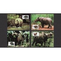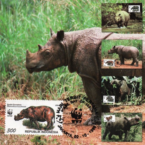 Na znaczkach i kartach widnieją gatunki nosorożców: sumatrzański i jawajski.