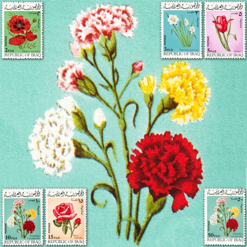 Na znaczkach widnieją kwiaty: maki, narcyzy, tulipany, goździki i róże.