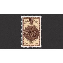 Na znaczku widnieje król Fajsal II i logo wystawy.