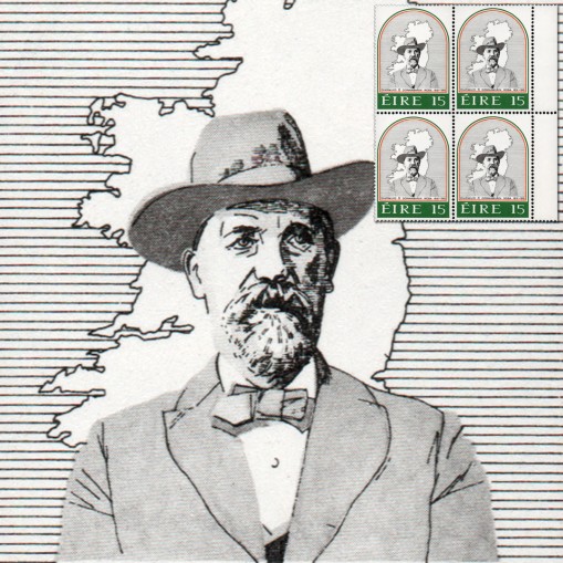 Znaczek w czwórce upamiętniający 150. rocznicę urodzin Jeremiaha O’Donovana Rossy, przywódcy ruchu fenian, czyli tajnego irlandzkiego stowarzyszenia niepodległościowego.