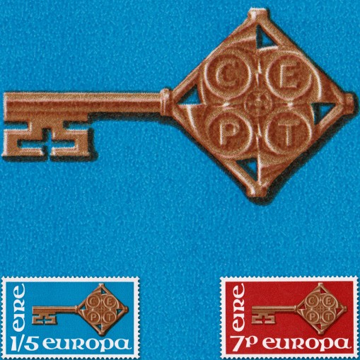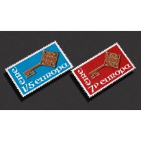 Emisja EUROPA CEPT. Znaczki tej emisji mają rozpoznawalny wśród filatelistów dizajn klucza, na uchwycie którego widnieje logo CEPT, będący projektem szwajcarskiego grafika (Hans Schwarzenbach). Miał to być symbol klucza do drzwi zunifikowanej Europy.