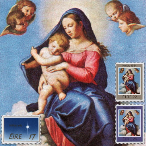 Na znaczkach widnieją kolejno: Gwiazda Betlejemska i obraz autorstwa włoskiego malarza Giovanniego Battisty Salvi przedstawiający Madonnę z Dzieciątkiem.