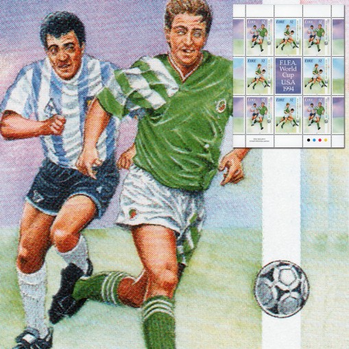 Na znaczkach widnieją piłkarze podczas meczów Irlandia-Argentyna oraz Irlandia-Niemcy.