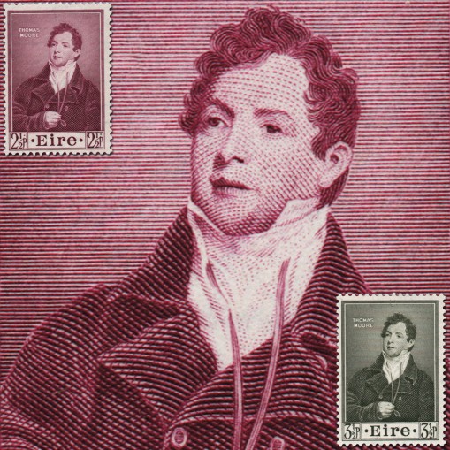 Znaczki upamiętniające setną rocznicę śmierci irlandzkiego poety Thomasa Moore’a. Sławę Sławny przyniosły mu pieśni „Irish Melodies” (tomy 1–10 wydane w latach 1807–1834), wzorowane na dawnych pieśniach irlandzkich. Opiewały piękno krajobrazu, tradycję i folklor Irlandii.