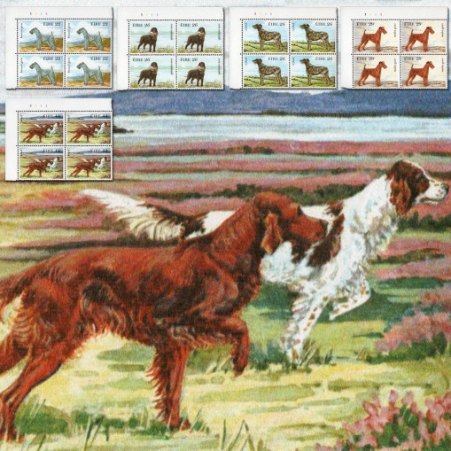 Seria w czwórkach prezentująca irlandzkie rasy psów.