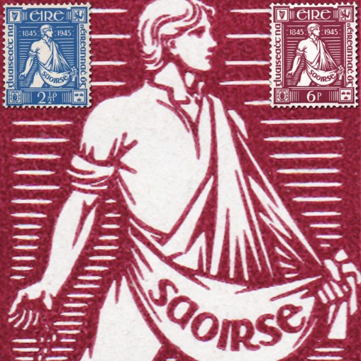 Znaczki upamiętniające setną rocznicę śmierci Thomasa Davisa, irlandzkiego polityka i pisarza, założyciela ruchu młodzieżowego Young Ireland, który w latach 40. XIX wieku walczył o niepodległość i reformy demokratyczne w kraju.