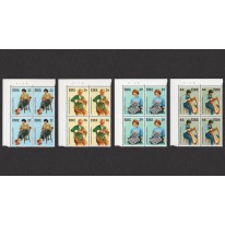 Na znaczkach widnieją kolejno: tkactwo, koszykarstwo, szydełkowanie i budowa harf.