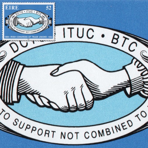 Znaczek upamiętniający stulecie irlandzkiego kongresu związków zawodowych.