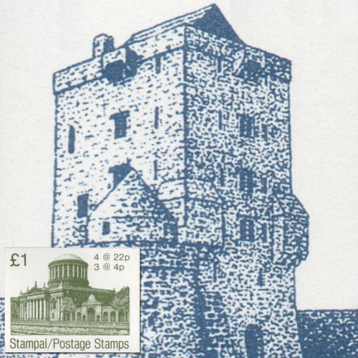 Znaczki w zeszyciku filatelistycznym pochodzące z serii prezentującej irlandzką architekturę.