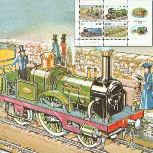 Na znaczkach przedstawiono różne lokomotywy i pociągi, których używano w Irlandii, a są to kolejno: