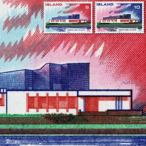 Na znaczkach widnieje Dom Północy w Reykjaviku.