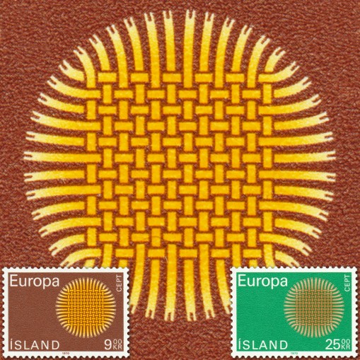 Emisja EUROPA CEPT. Znaczki tej emisji mają rozpoznawalny wśród filatelistów dizajn słońca, będący projektem irlandzkiego artysty (Louis le Brocquy). Słońce zbudowane jest ze splecionych ze sobą linii symbolizujących pocztę i telekomunikację, a ich liczba (24) odpowiadała liczbie krajów zrzeszonych wówczas w CEPT.